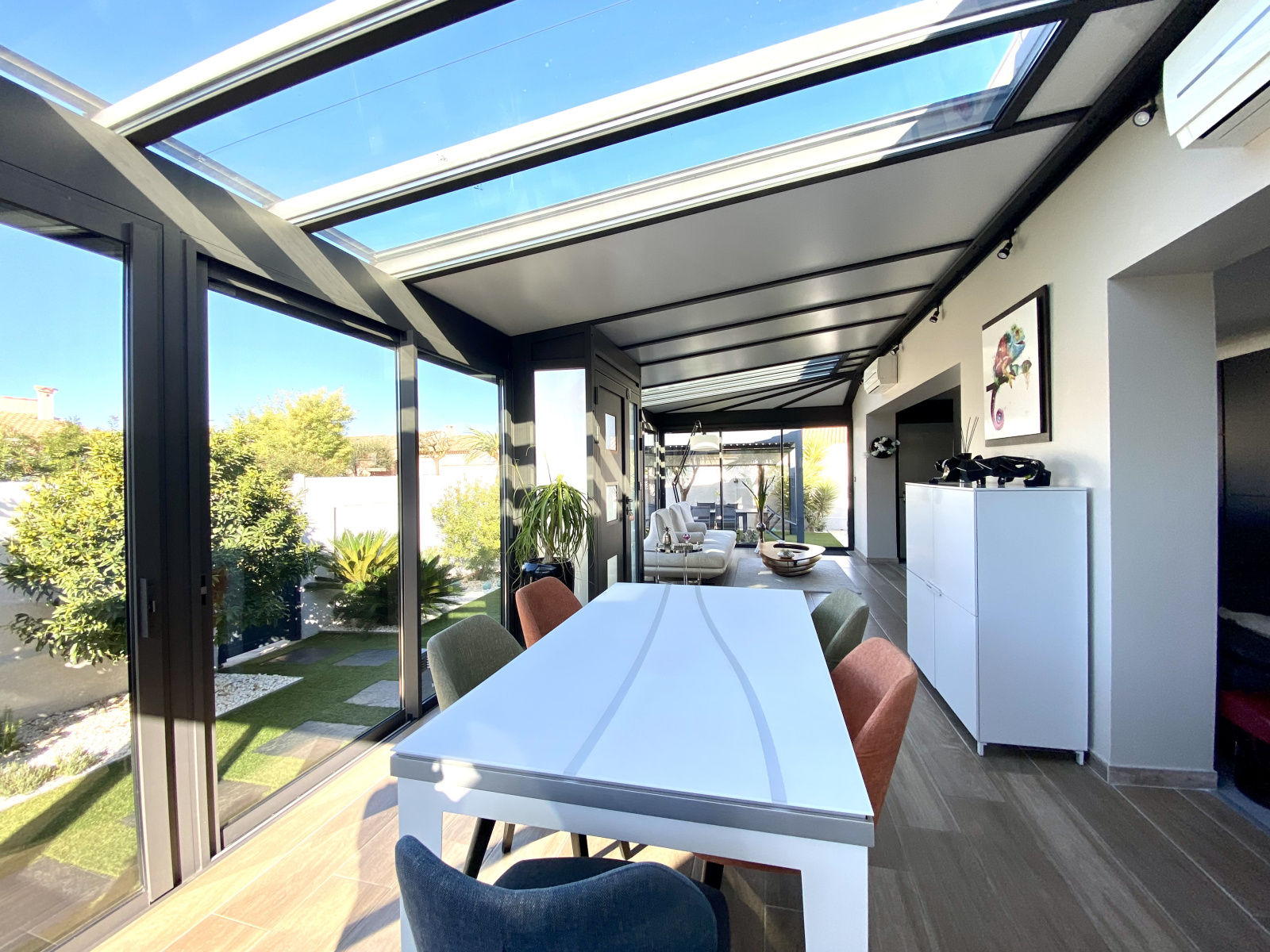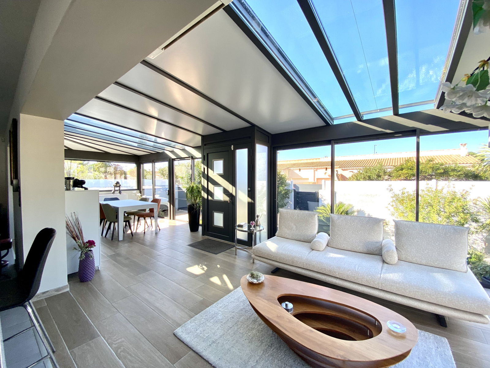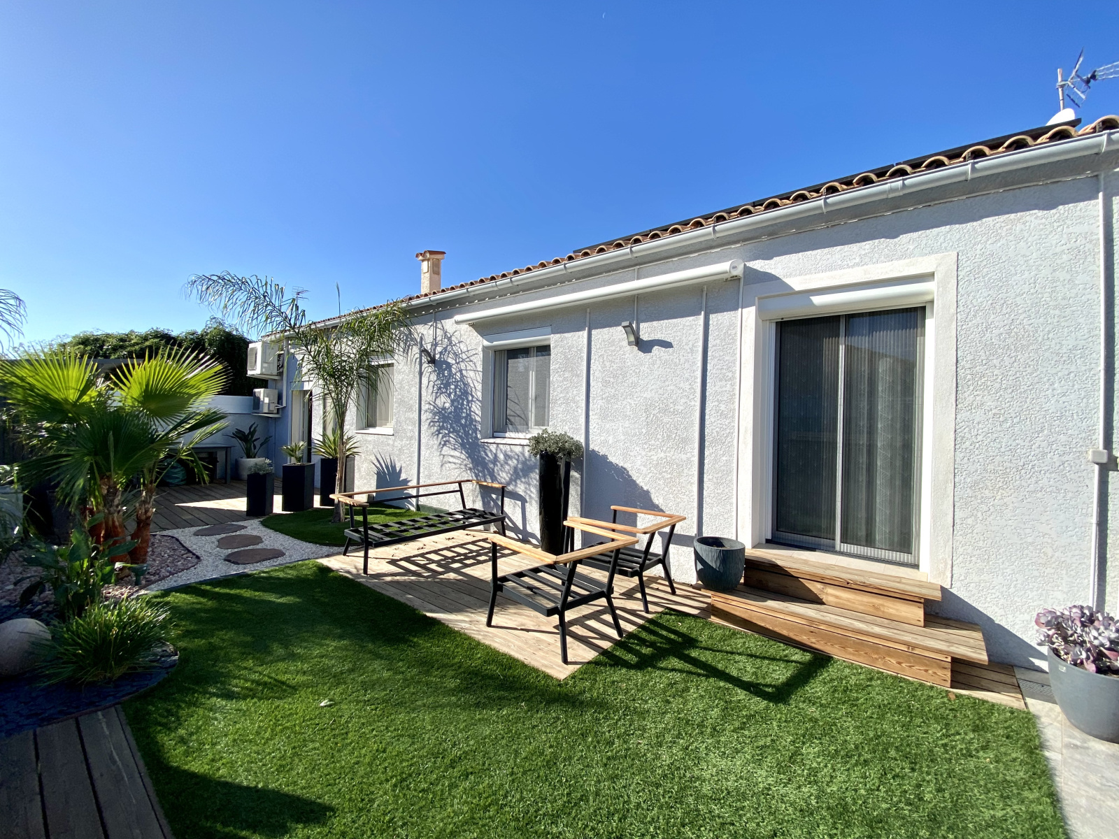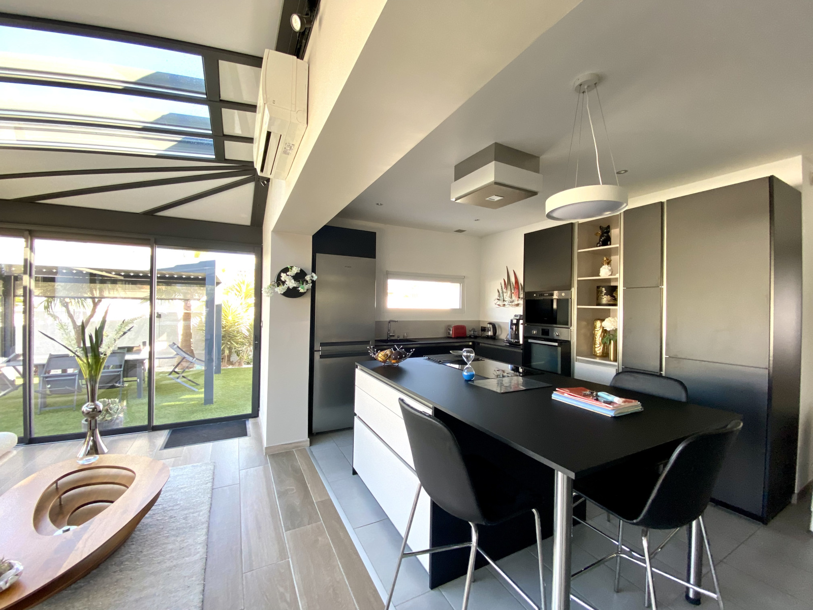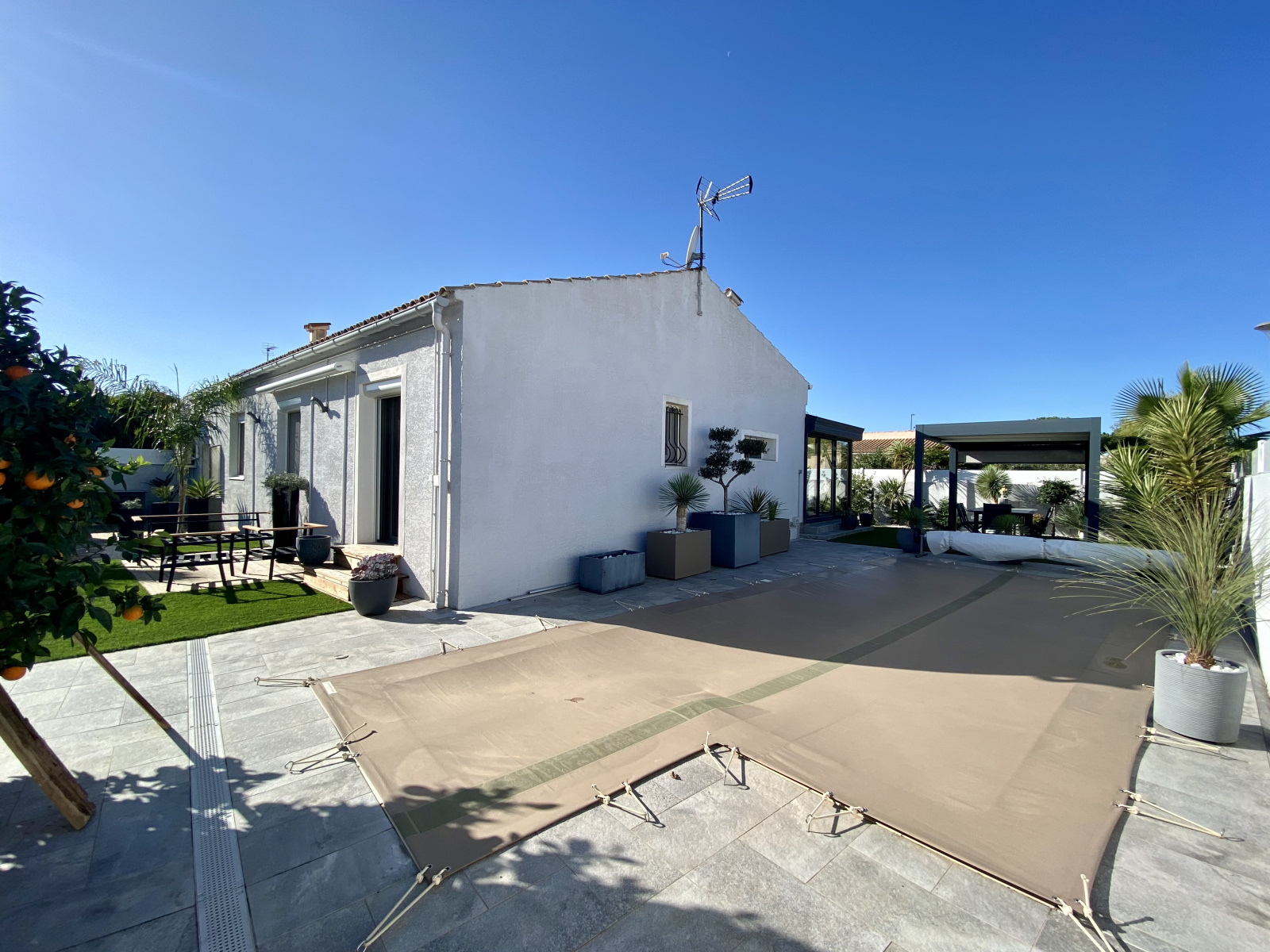Vias (34450)VENDU PAR LE BOULEVARD DE L'IMMOBILIER - Nous vous proposons de découvrir cette magnifique villa implantée à deux pas du centre-ville de VIAS, et offrant des prestations de confort et de qualité rare sur le marché. Vous serez séduits par ses nombreuses installations modernes et facilitant la gestion et l'entretien de la propriété. La domotique est au cœur de ce système qui comprend les volets roulants, la gestion de la piscine chauffée, les panneaux photovoltaïques, l'arrosage, les stores, l'alarme, la pergola extérieure et la superbe véranda dernier cri offrant une luminosité et un espace de vie très agréable ouvert sur le jardin paysagé avec piscine. Chaque m² du terrain a été aménagé de manière à offrir un écrin de verdure dépaysant à l'abris des regards et avec très peu d'entretien. Elle comprend 3 chambres, une salle d'eau, un WC, un garage et une cave en sous sol permettant d'avoir un espace de stockage supplémentaire. Cette maison représente un achat clés en main sans aucun travaux à prévoir. Elle sera votre meilleure alliée pour une vie confortable et facile en bord de mer.
