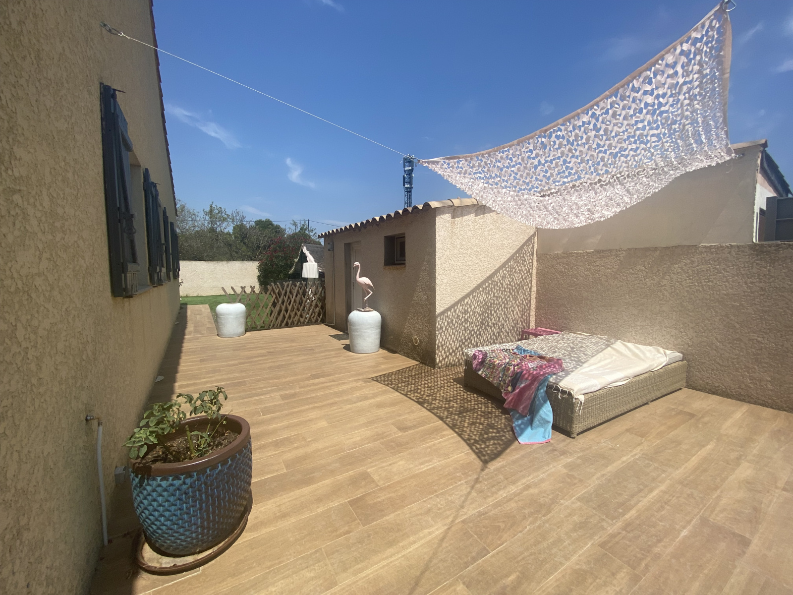 Vias (34450)VENDU PAR LE BOULEVARD DE L'IMMOBILIER - Votre agence LE BOULEVARD DE L'IMMOBILIER vous propose de découvrir cette superbe Villa de plain-pied de 160m² environ sise sur un terrain de 622m² avec piscine et jacuzzi. Située à proximité du centre ville de VIAS, l'habitation offre un spacieux salon/séjour de 40m² et une grande cuisine entièrement aménagée et semi-équipée avec accès sur une belle terrasse ombragée de 25m². Dans l'espace nuit vous trouverez 4 chambres de plain pied dont deux avec placard, une pièce dressing et une salle de bain. Une 5ème chambre climatisée se dévoile au-dessus du garage avec son point d'eau. Ses atouts: garage de 33m², possibilité de stationner un camping dans le terrain, climatisation/chauffage gainable, moustiquaires, un cabanon extérieur avec douche et WC à côté de la piscine. Cette maison est idéale pour se retrouver en famille. N'hésitez pas, contactez nous: 06.89.31.73.47.