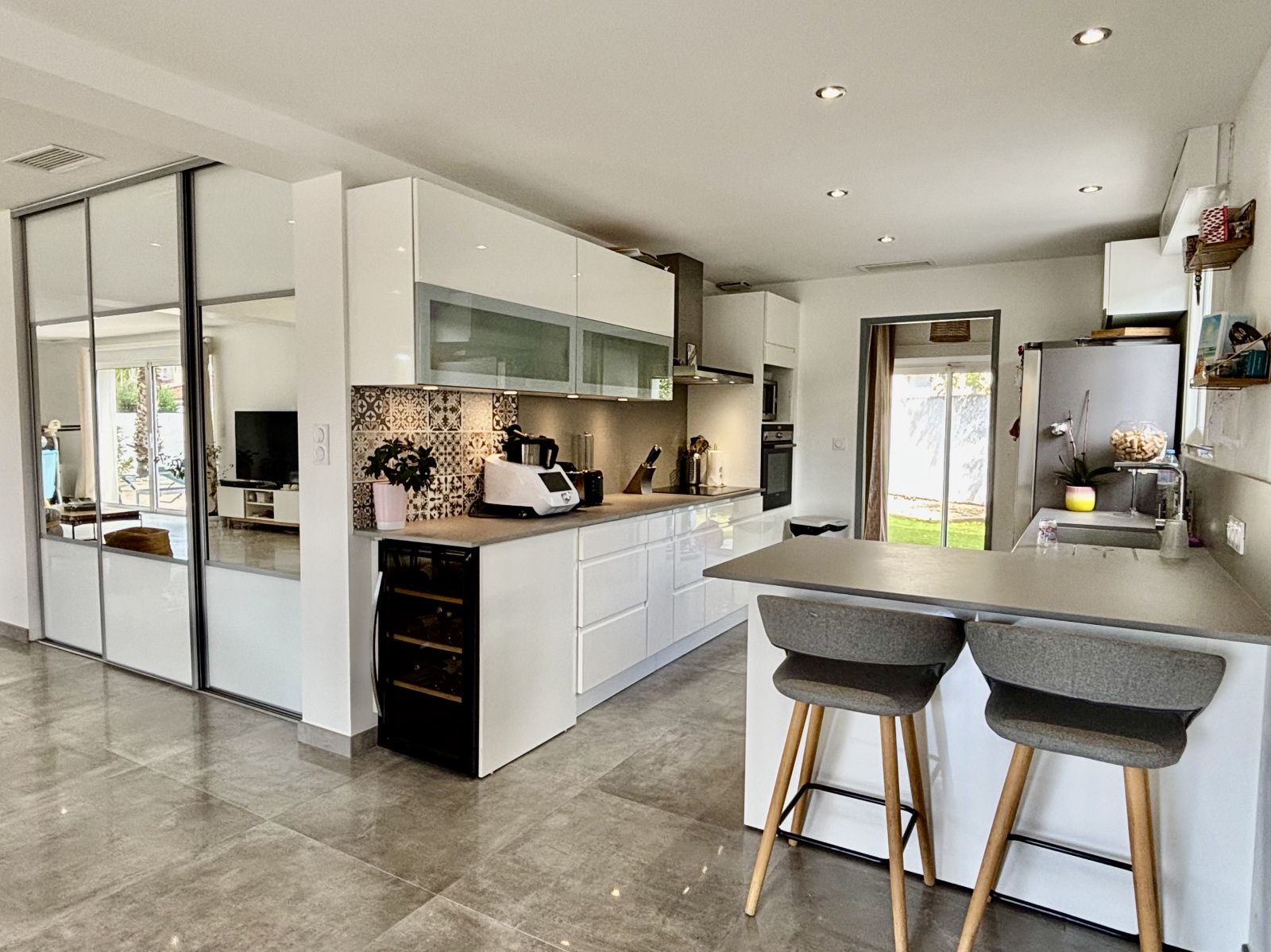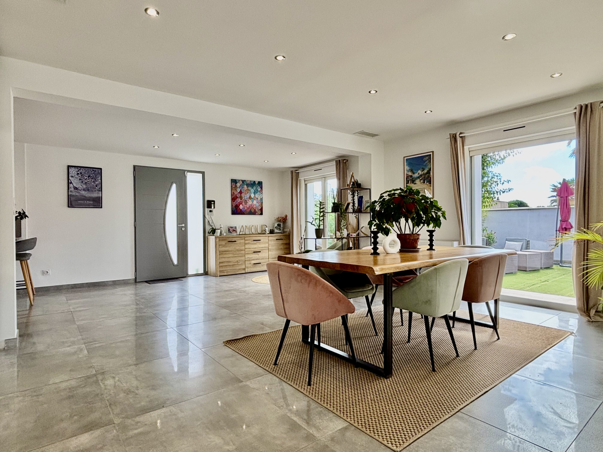 Développant une surface habitable d’environ 170 m², elle séduit dès l’entrée par sa pièce à vivre majestueuse de 73 m², baignée de lumière naturelle où les volumes, les lignes épurées et les ouvertures sur l’extérieur créent une ambiance à la fois chaleureuse et contemporaine. L’espace se prolonge harmonieusement vers la piscine et les terrasses, parfaits pour recevoir ou se détendre en toute intimité.