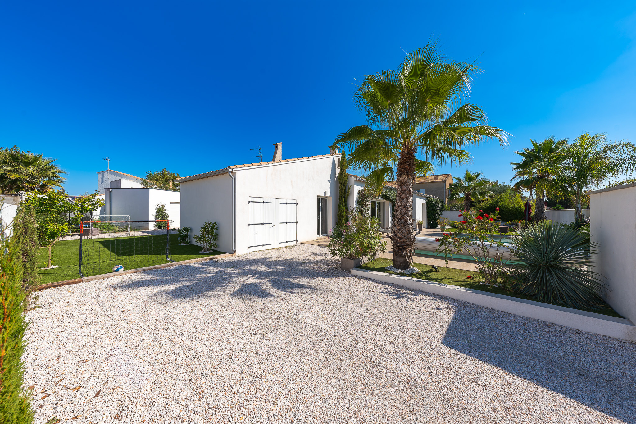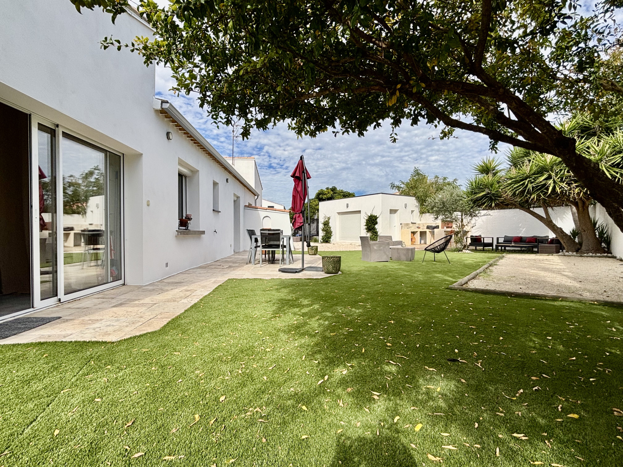 Vias (34450)Située dans un environnement paisible et préservé, cette superbe villa entièrement de plain-pied, sans aucune mitoyenneté, offre un cadre de vie exceptionnel, mêlant confort, espace et élégance.