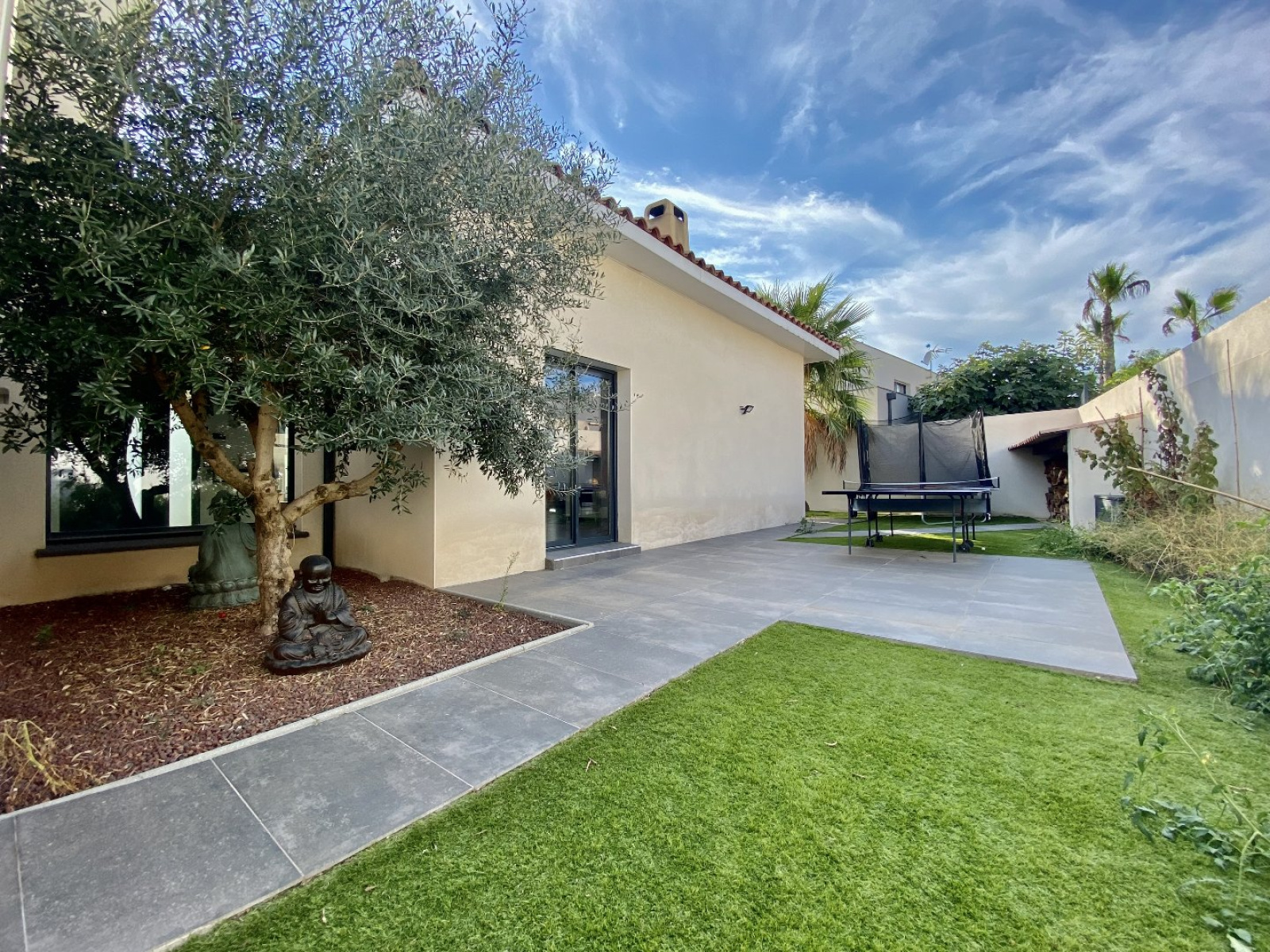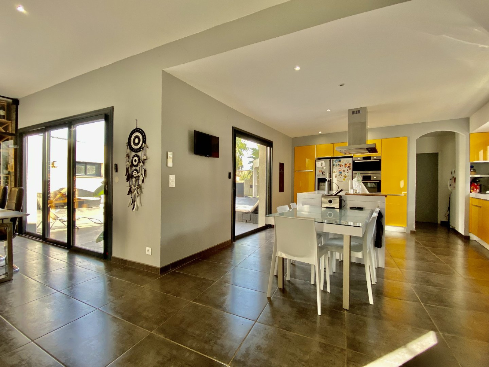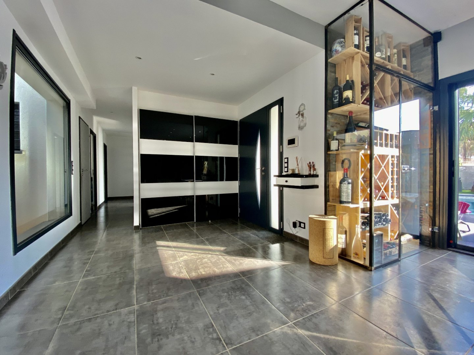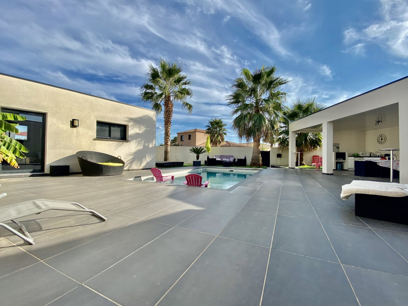 VENDU PAR LE BOULEVARD DE L'IMMOBILIER - Dans un quartier prisé de la commune, votre agence vous propose de découvrir un havre de paix niché à quelques pas de la Méditerranée: une superbe villa offrant fonctionnalité et tout le confort possible! Construite en 2012 et 100% de plain pied, cette habitation aux lignes contemporaines offre une lumineuse et spacieuse pièce à vivre donnant de part et d'autre du terrain, une cuisine ouverte aménagée et équipée donnant sur l'espace extérieur côté piscine, un cellier + buanderie attenants. Côté nuit, vous disposerez de 3 chambres avec placards, une salle de bains (+ douche), un WC indépendant mais également d'une vaste suite parentale avec salle d'eau/WC + dressing, le tout donnant sur l'espace piscine. En extérieur: il ne manque rien! Piscine, jacuzzi, cuisine d'été abritée + espace barbecue / four à pizza, douche et WC extérieurs, un grand garage et la possibilité de stationner plusieurs véhicules. Mais encore: mer à proximité, climatisation réversible, poêle à bois, volets centralisés, magnifique cave à vins intégrée dans le séjour, terrain entièrement aménagé, nombreuses ouvertures... Cette villa est un vrai bijoux où aucun travaux ne sont à prévoir! Honoraires charge vendeur.