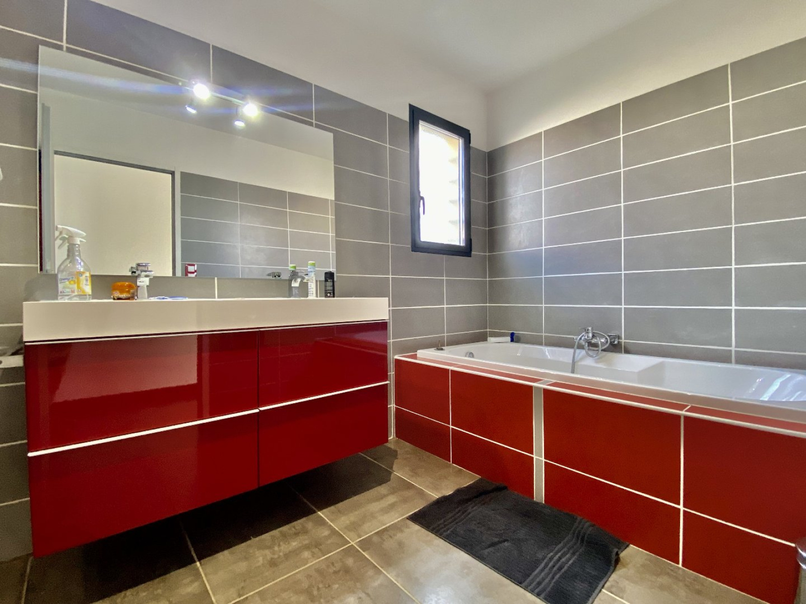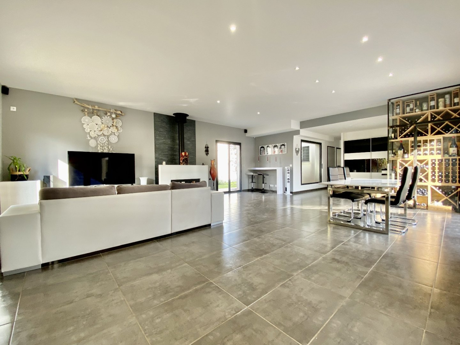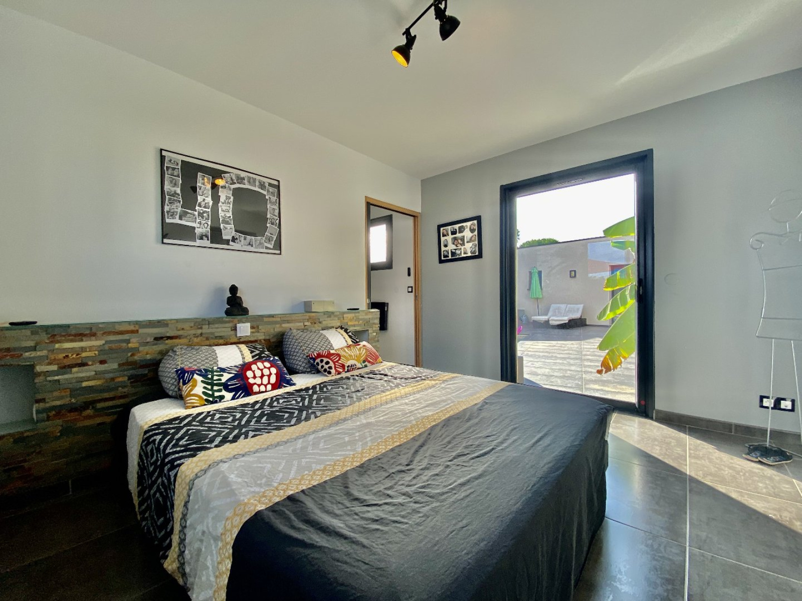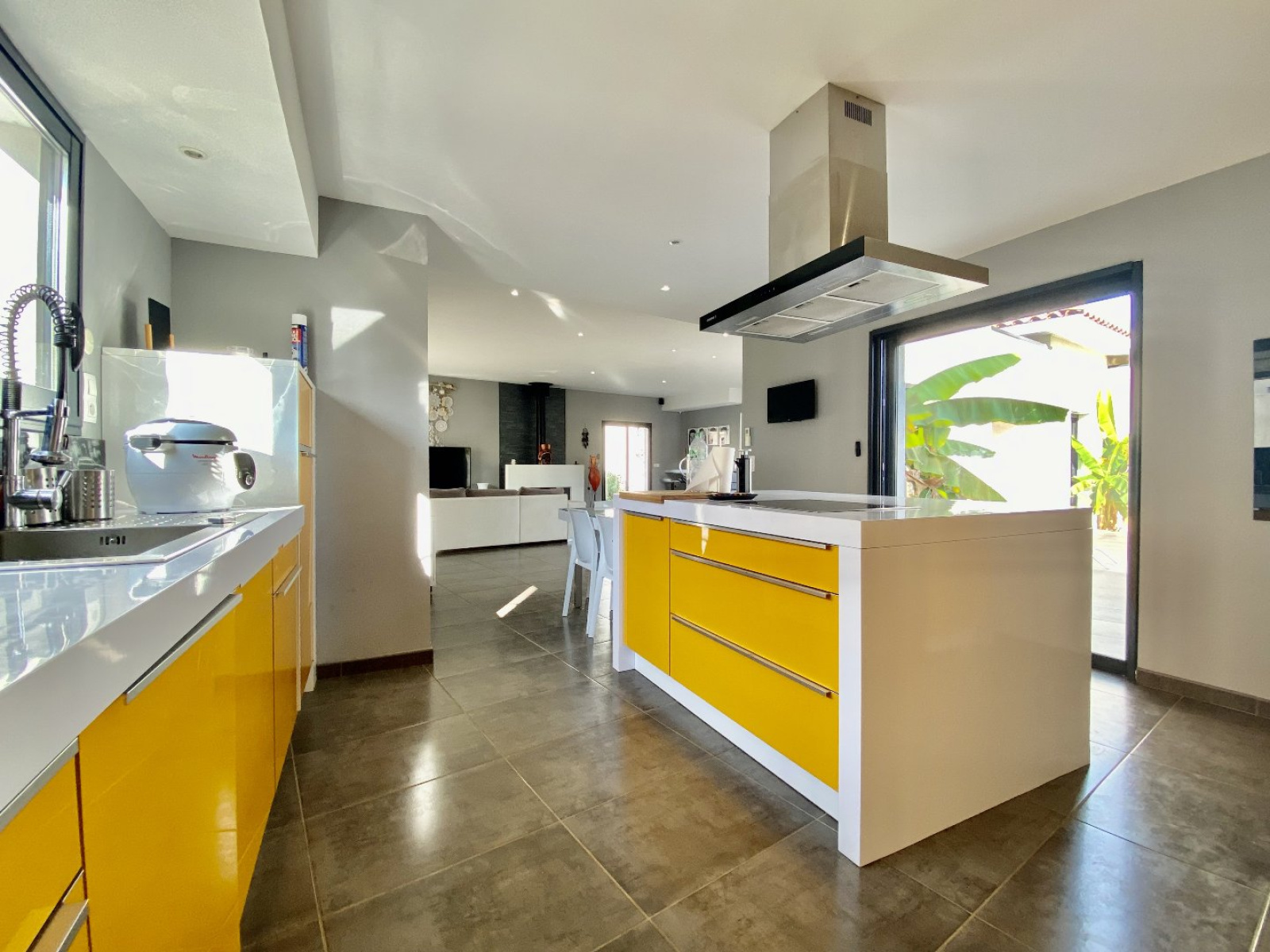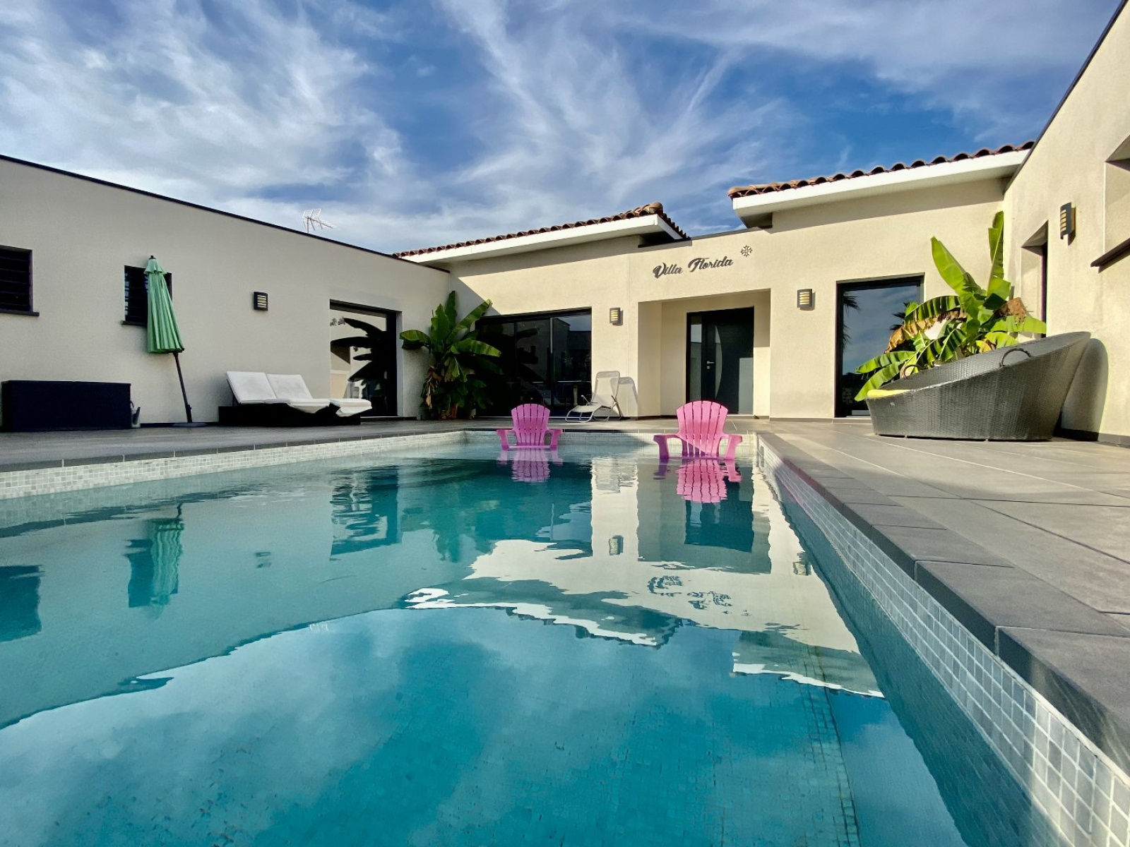 VENDU PAR LE BOULEVARD DE L'IMMOBILIER - Dans un quartier prisé de la commune, votre agence vous propose de découvrir un havre de paix niché à quelques pas de la Méditerranée: une superbe villa offrant fonctionnalité et tout le confort possible! Construite en 2012 et 100% de plain pied, cette habitation aux lignes contemporaines offre une lumineuse et spacieuse pièce à vivre donnant de part et d'autre du terrain, une cuisine ouverte aménagée et équipée donnant sur l'espace extérieur côté piscine, un cellier + buanderie attenants. Côté nuit, vous disposerez de 3 chambres avec placards, une salle de bains (+ douche), un WC indépendant mais également d'une vaste suite parentale avec salle d'eau/WC + dressing, le tout donnant sur l'espace piscine. En extérieur: il ne manque rien! Piscine, jacuzzi, cuisine d'été abritée + espace barbecue / four à pizza, douche et WC extérieurs, un grand garage et la possibilité de stationner plusieurs véhicules. Mais encore: mer à proximité, climatisation réversible, poêle à bois, volets centralisés, magnifique cave à vins intégrée dans le séjour, terrain entièrement aménagé, nombreuses ouvertures... Cette villa est un vrai bijoux où aucun travaux ne sont à prévoir! Honoraires charge vendeur.